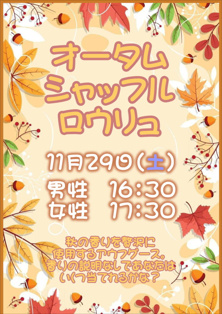 29日【オータムシャッフルロウリュ🍁】