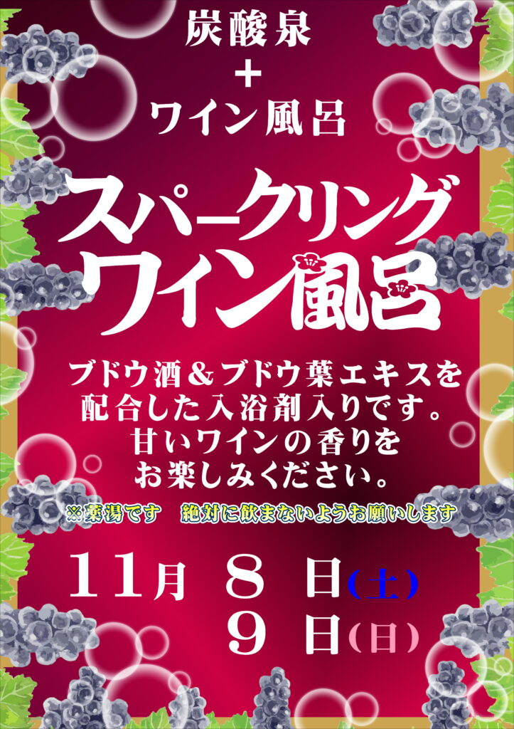 8・9日【ワイン風呂🍇】