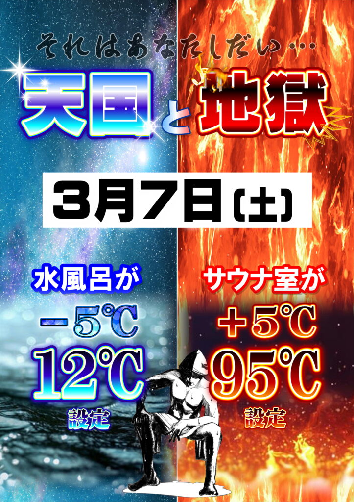 🔹天国と地獄 サウナの温度⤴️水風呂温度⤵️のサウナー向けイベント🔥