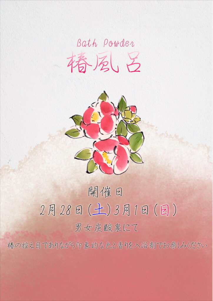 🔹椿風呂🌺男女開催 ※入浴剤です
