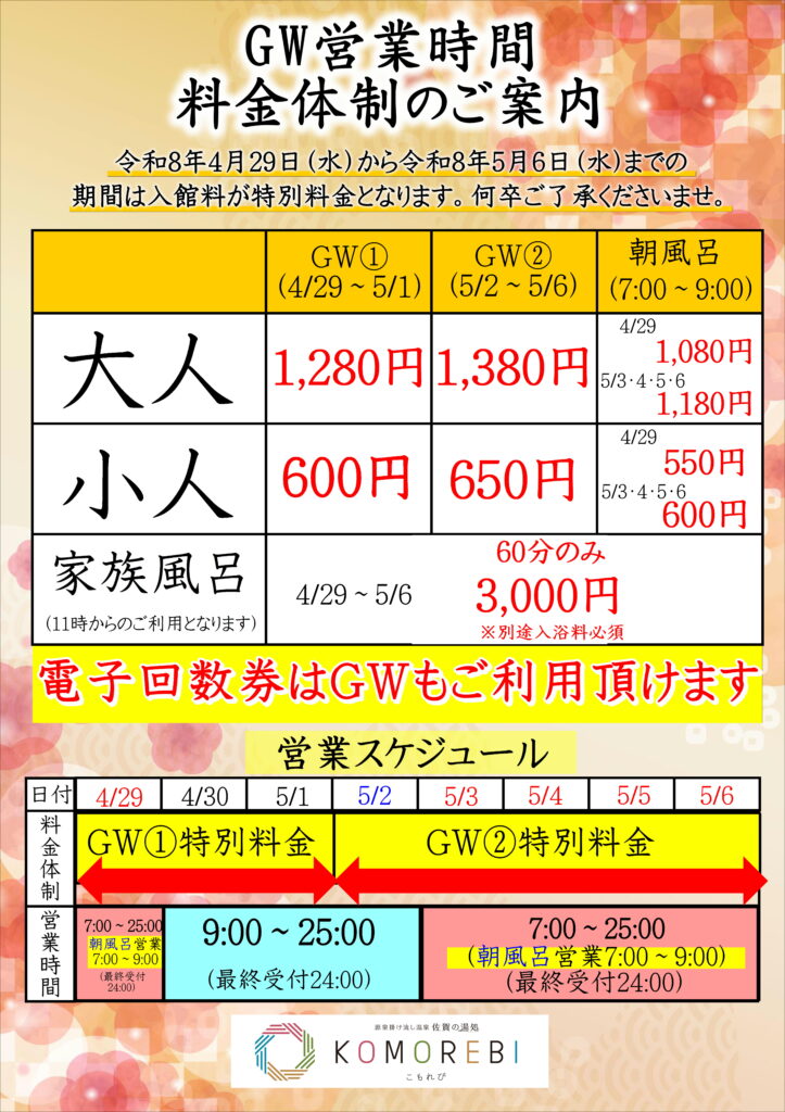 □3歳以下のお子様は入館無料です。ただし、家族湯のみのご利用となります。(大浴場での入浴不可)